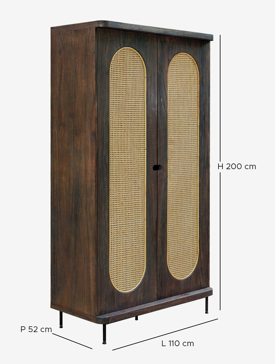 Besoin de rangement dans votre chambre pour vos vêtements et votre linge de maison, ou également de rangement dans votre cuisine pour votre vaisselle ? Cette armoire noir 2 portes en bois massif et cannage Sanaa vous convie au voyage. Conçue avec un cannage blond, cela lui confère un style voyage qui contraste littéralement avec sa structure en bois massif noir. Posée sur un piètement robuste en métal noir, cette armoire chaleureuse vous offre une grande capacité de rangement. Un mélange de naturel et de vintage dans votre intérieur.