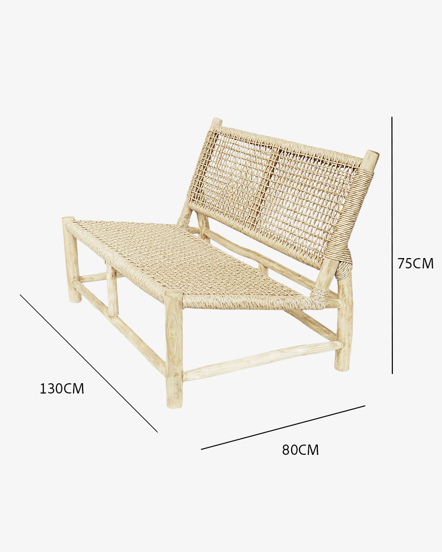 La banquette Jaya est composée de bois de teck massif et rotin, deux matières naturelles qui sont faites pour durer. Le bois de teck massif est issu d’Indonésie. De qualité premium, il offre une solidité et une résistance exceptionnelles. L’assise et le dossier sont doublés d’un tressage en rotin, qui permet un appui solide et confortable. Cependant, vous pouvez sans problème ajouter des coussins pour personnaliser votre banquette Jaya et rendre l’assise encore plus confortable !